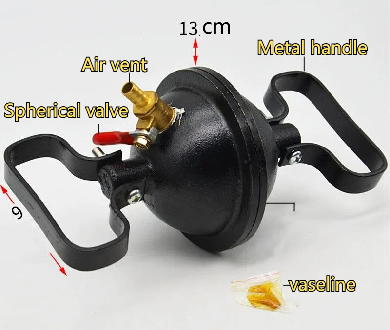 Emisferele sunt realizate din fonta de calitate superioara prelucrate cu precizie pentru a se realiza o inchidere etansa. Robinetul, prin care se poate vida interiorul perechii de emisfere montate, este din Cupru.