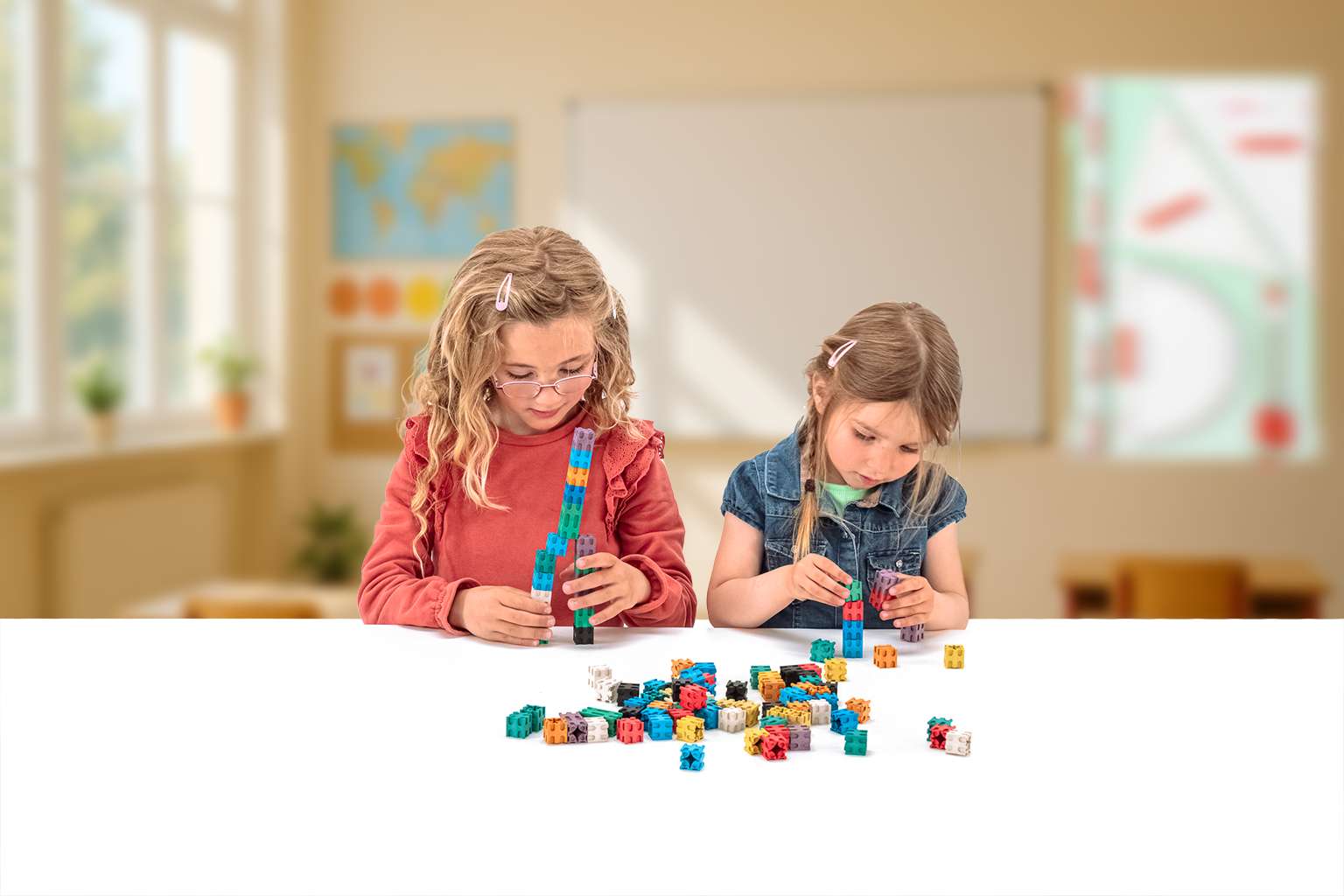 Set de cuburi colorate interconectabile, ce permite copiilor asamblarea acestora în diverse moduri.