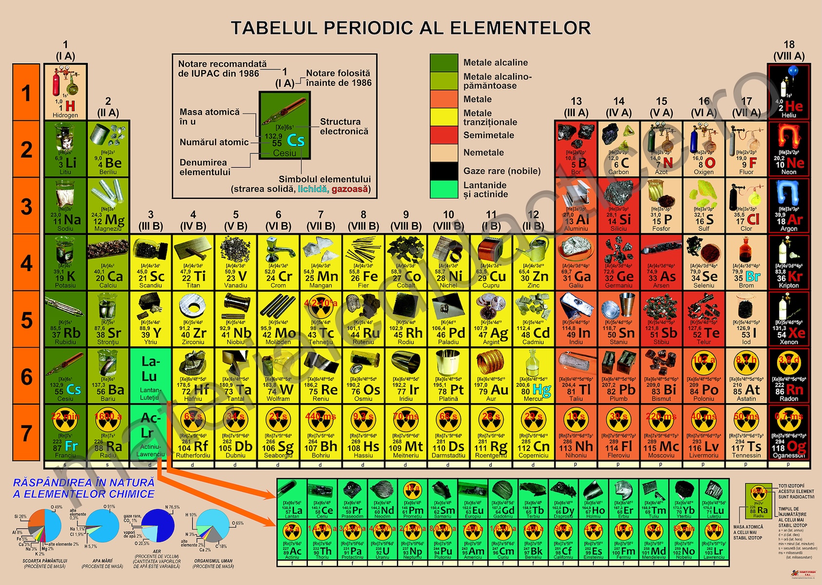 Tabelul periodic al elementelor, numit și tabelul periodic al lui Mendeleev, cuprinde într-o formă tabelară toate elementele chimice, aranjate în funcție de proprietățile lor fizice și chimice.