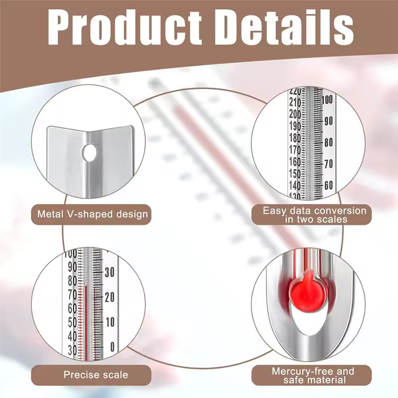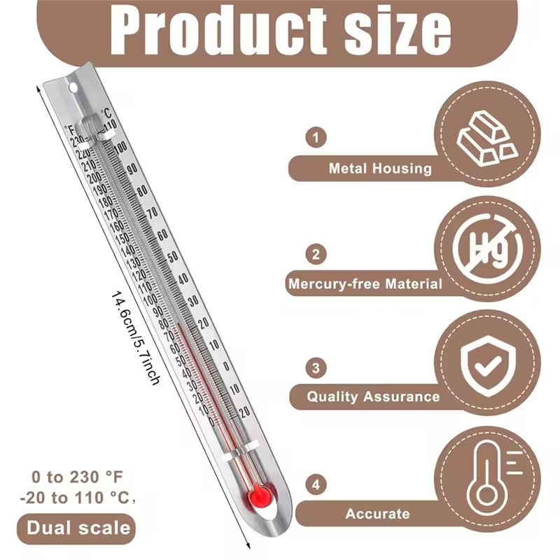 Aceste termometre, sigure şi durabile, măsoară temperatura de la –20 ° C până la 110 ° C și de la 0 ° F la 230 ° F.