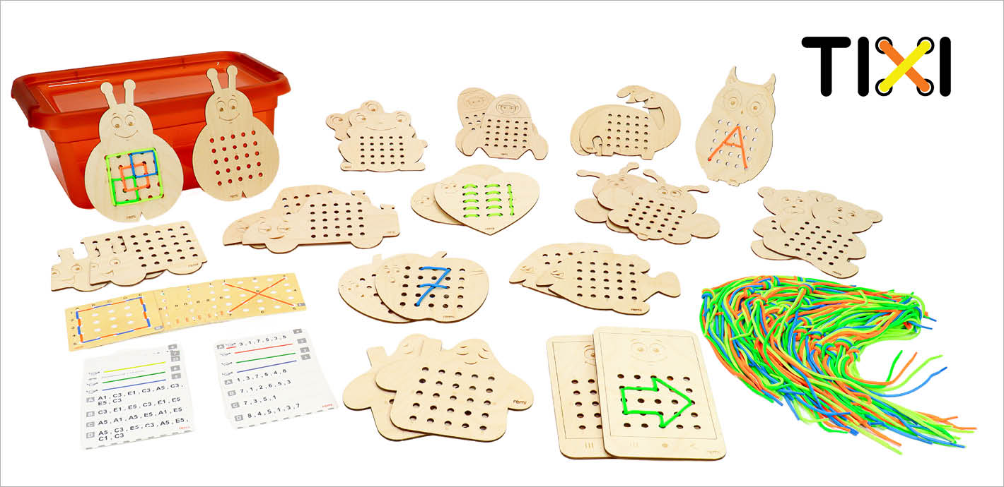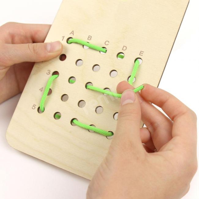 Material didactic conceput special pentru dezvoltarea indemanarii si stimularea puterii de concentrare, prin exersarea executiei unor figuri folosind modele, sau indicatii verbale: sus, jos, stanga, dreapta. Formele sunt marcate cu cifre si litere care alcatuiesc sisteme de coordonate.